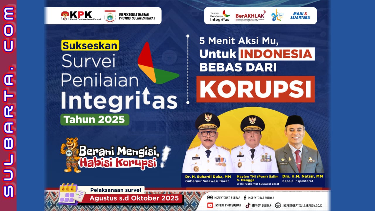 Mamuju-SulbarTa.com – Dalam rangka meningkatkan kesadaran risiko korupsi dan memperkuat sistem antikorupsi di Indonesia, Komisi Pemberantasan Korupsi (KPK) kembali menyelenggarakan Pengukuran Indeks Integritas Nasional melalui Survei Penilaian Integritas (SPI) Tahun 2025.