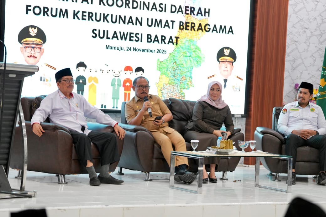 Mamuju-SulbarTa.com – Gubernur Sulbar, Suhardi Duka (SDK) menghadiri Rapat Koordinasi (Rakor) Daerah Forum Kerukunan Umat Beragama (FKUB) Sulbar yang digelar di Aula Kantor Kanwil Kemenag Sulbar, Senin, 24 November 2025.