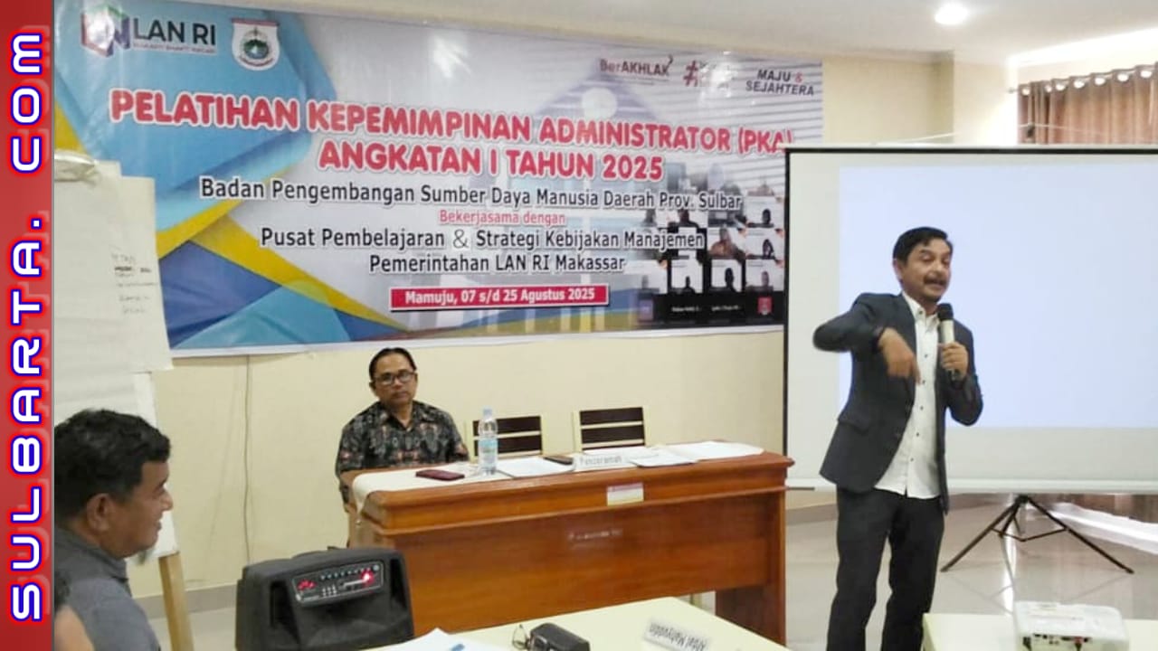 Mamuju-SulbarTa.com– Kepala Badan Pengelolaan Keuangan dan Pendapatan Daerah (BPKPD) Provinsi Sulawesi Barat (Sulbar), Mohammad Ali Chandra, menjadi narasumber pada Pelatihan Kepemimpinan Administrator (PKA) Angkatan I Tahun 2025 yang diselenggarakan oleh Badan Pengembangan Sumber Daya Manusia Daerah (BPSDMD) Provinsi Sulbar, Sabtu (9/8/2025).