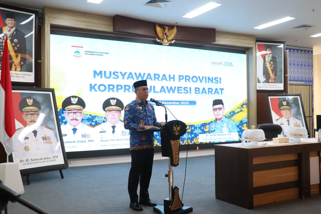 Mamuju-SulbarTa.com – Sekretaris Daerah (Sekda) Provinsi Sulawesi Barat, Junda Maulana, resmi terpilih secara aklamasi sebagai Ketua Korpri Sulbar periode 2025–2030. Penetapan tersebut berlangsung dalam Musyawarah Provinsi (Musprov) Korpri Sulbar yang digelar di Ballroom Andi Depu, Kantor Gubernur Sulbar, Senin, 1 Desember 2025.