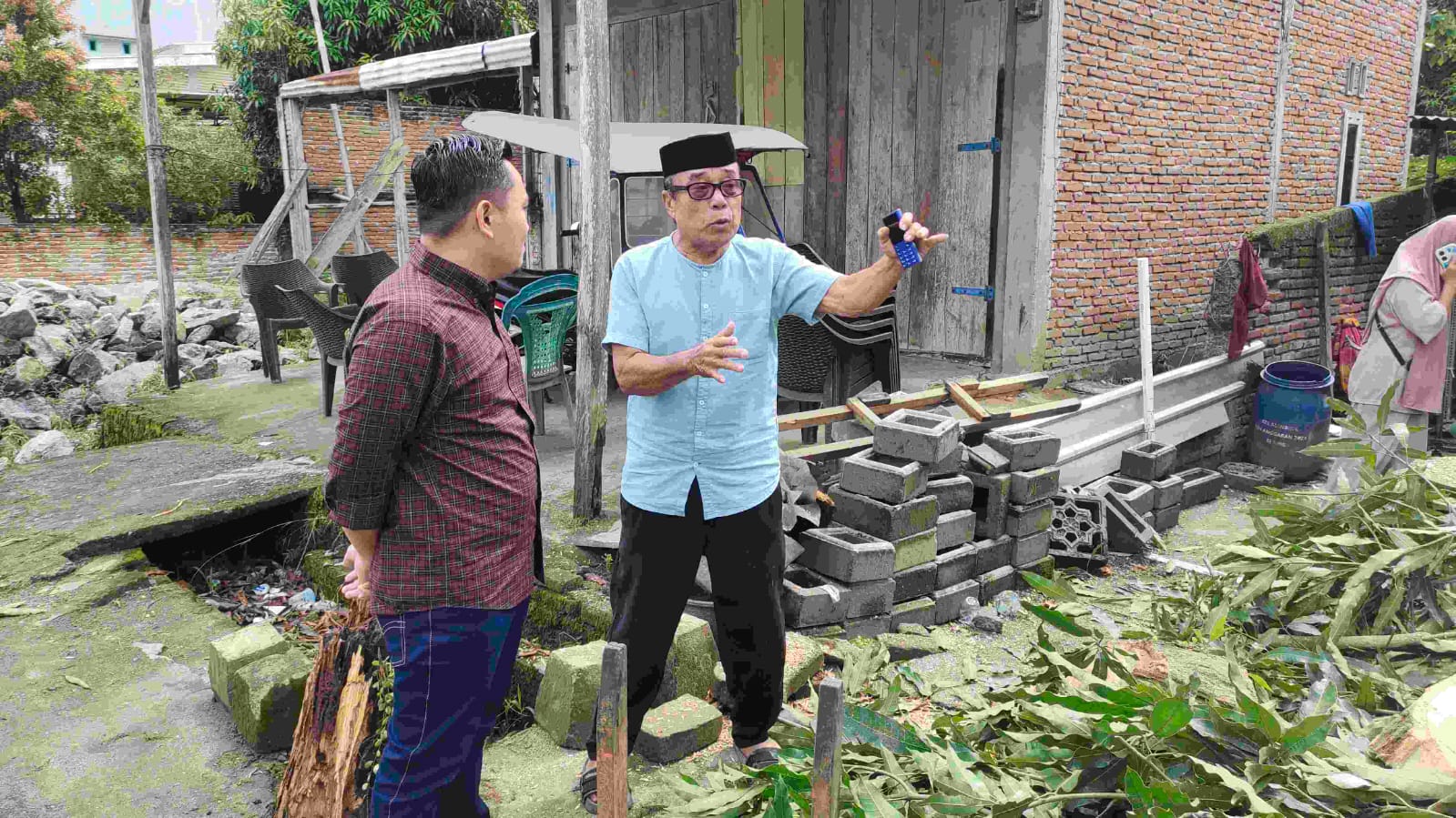 Dalam kunjungannya, Fahry melihat langsung kondisi bangunan sekaligus menyapa keluarga korban. Ia juga segera menghubungi Dinas Lingkungan Hidup agar sisa potongan kayu yang masih berserakan di lokasi dapat segera dibersihkan.