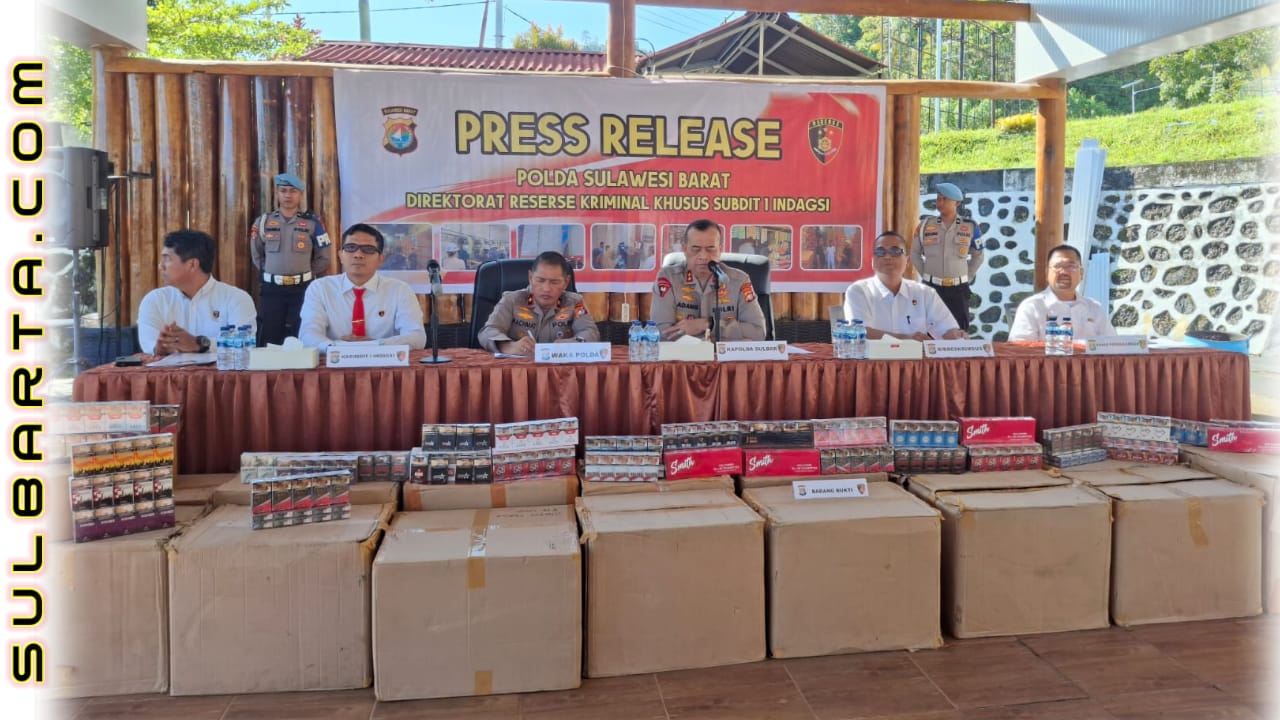 Pengungkapkan peredaran rokok ilegal di seluruh wilayah Sulbar, berlangsung di lapangan Tribrata Polda Sulbar yang dipimpin langsung Kapolda Sulbar, Irjen Pol Adang Ginanjar.