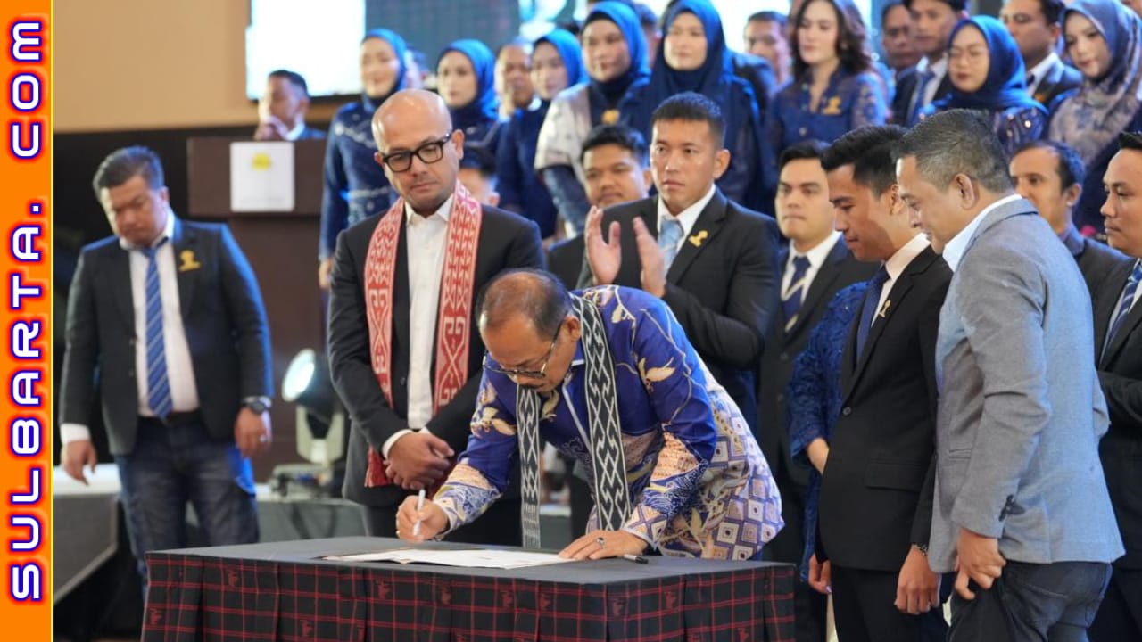 Mamuju – Gubernur Sulbar, Suhardi Duka, menghadiri pelantikan Badan Pengurus Daerah (BPD) Himpunan Pengusaha Muda Indonesia (HIPMI) Sulawesi Barat masa bakti 2025–2028, yang berlangsung di Ballroom Hotel Maleo Mamuju, Rabu malam, 27 Agustus 2025.